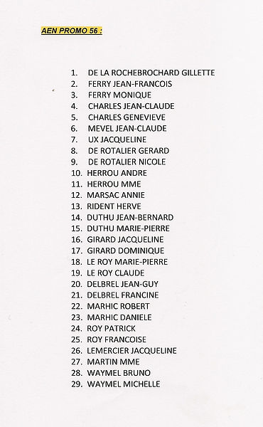 Les participants de la promotion 1953 avec les numéros de cabines